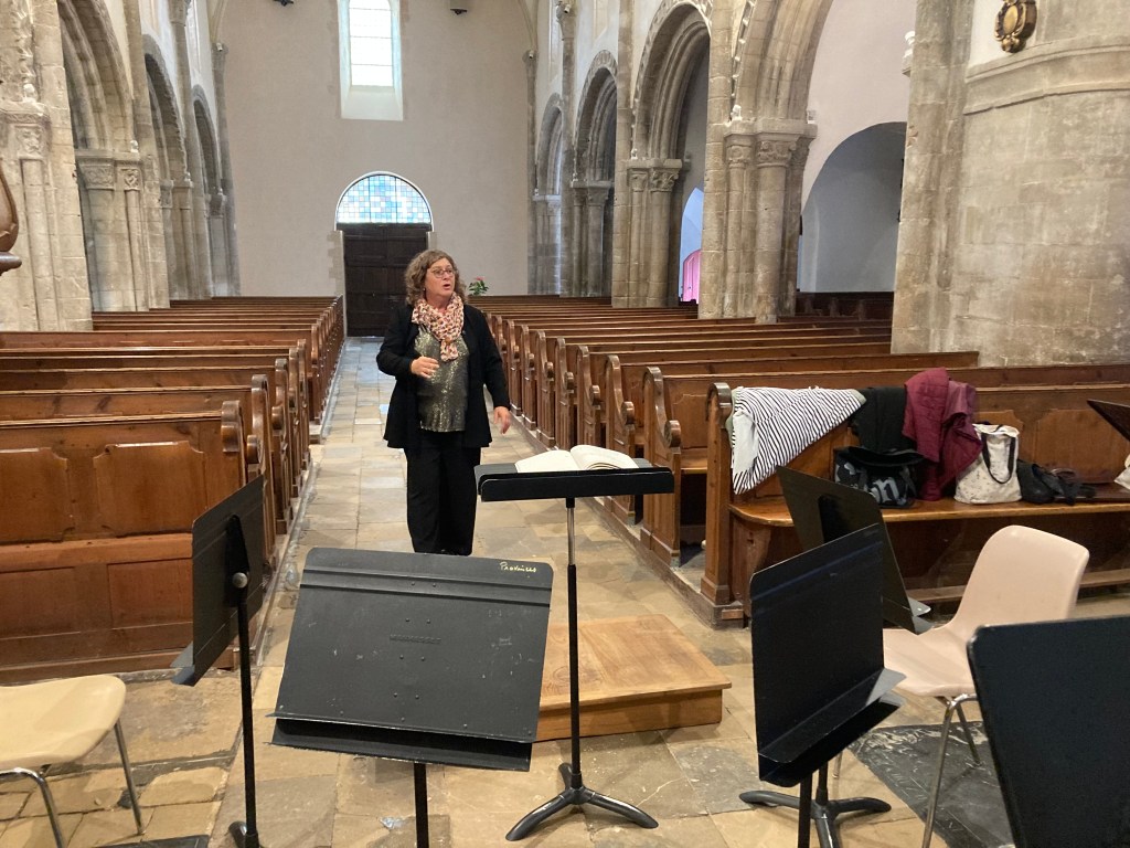 Quelques images des dernières mises au point avant le dernier concert, dont une répétition inhabituelle à l’extérieur de l’église