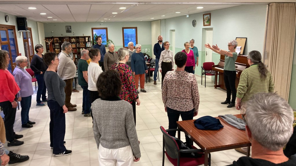 Dans une ambiance toujours aussi joyeuse, le choeur a fait ses gammes devant un juge compréhensif et facile d’accès, adepte de la métaphore. Chaque pupitre de voix a bénéficié de trois quart d’heure de formation personnalisée, pendant que les autres choristes répétaient le programme 2026 avec Cécile Duverger, déchiffrant notamment de nouvelles oeuvres comme l’Agnus Dei de Barber.
