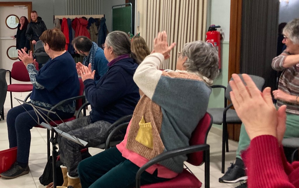 Il fallait la croire pour le voir: les exercices de type yoga et l’apprentissage de l’écoute de son corps ont transformé le son du choeur l’espace d’une journée de formation dimanche 28 janvier 2024, avec notre amie Marie-Paule, elle-même chanteuse soliste et qui a aussi des dons d’interprétation cachés. Les choristes se sont régalés en la voyant mimer les attitudes nécessaires à la bonne interprétation d’un chant dans son contexte.