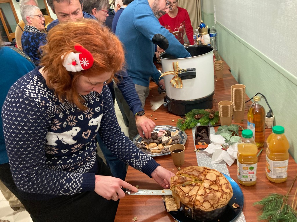 Sur une idée de la nouvelle présidente Aude Chervy, l’association a offert un joli banquet de friandises et de gâteaux aux choristes, arrosé de vin chaud confectionné par la présidente elle-même, aidée à la décoration, en famille, par la jeune Rose.