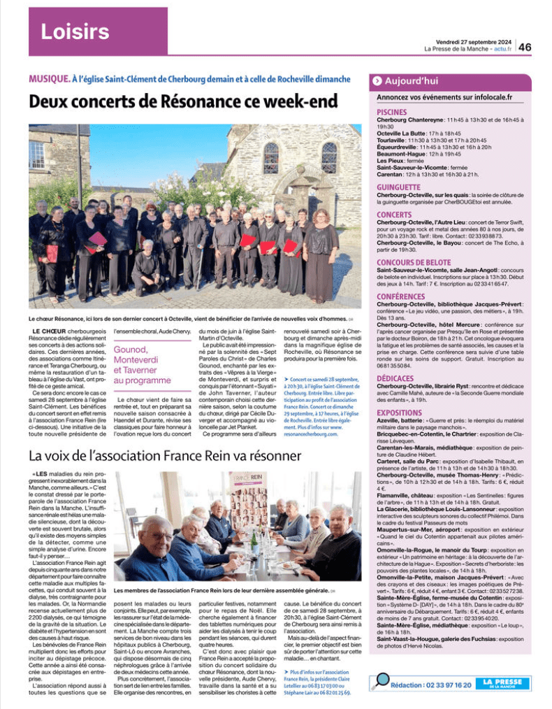 Il ne reste plus qu’à renouveler la performance ce mardi 24 juin à 20h30 à l’église Saint-Martin d’Octeville. Le choeur amateur de Cherbourg a deux jours pour s’en remettre et pour appliquer les remarques toujours exigeantes de Cécile.
